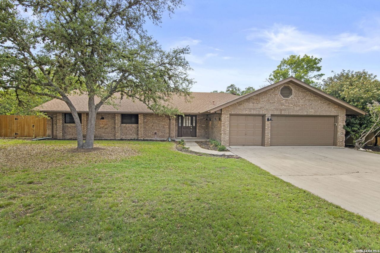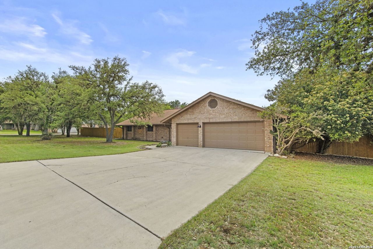 *** Seller offering buyer concessions. *** Rare opportunity in Fair Oaks Ranch! Situated on a spacious half-acre corner lot on a quiet cul-de-sac, this 3 bedroom, 2.5 bathroom home offers 2,308 square feet of well-designed living space with room to spread out both inside and out. Step inside to find an open and inviting layout featuring a large living area with vaulted ceilings, exposed beam detail, and a striking brick fireplace. The kitchen is a true centerpiece, complete with an oversized island, quartz countertops, abundant cabinetry, stainless steel appliances, and a built-in wine fridge-perfect for entertaining. A bright breakfast nook with bay windows overlooks the backyard and fills the space with natural light. The primary suite is generously sized and offers a private retreat with its own fireplace and a large ensuite bath and walk-in closet. Secondary bedrooms are well-proportioned and share a full bath, while an additional half bath adds convenience for guests. Outside, enjoy mature trees, a wide driveway with a 3-car garage, and the privacy that comes with a large corner lot. Homes with this lot size and location are hard to find-dont miss your chance to own a piece of Fair Oaks Ranch!