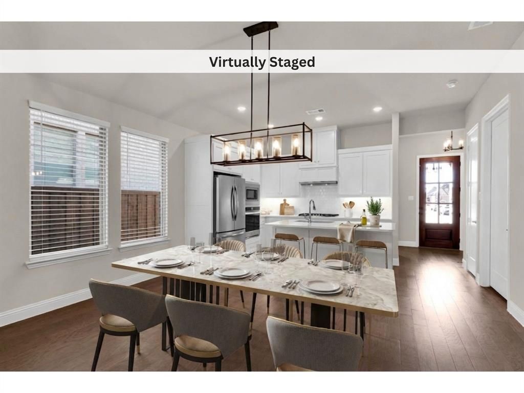 Welcome to this immaculate one-story Drees Custom Home with 4 Bedrooms + Office or Separate Dining Room! The Cunningham floorplan is thoughtfully designed to feel larger. Stunningly beautiful hardwood floors and 10-foot ceilings. The primary shower is extra large with a spa-like feel. Includes all kitchen and laundry appliances, a modern tankless hot water heater, and plenty of smart home features to keep your electric bills lower. Plenty of backyard grassy space with a nice covered patio. Residents of Timber Creek in McKinney enjoy a community with highly-rated public schools, swimming pool, firepit, playground, a fishing pond with a gazebo, and 25 miles of walking or hiking trails with tons of trees. The sunset views from the front door are too stunning to capture on pictures. Come see this unique and beautiful custom home before it sells.